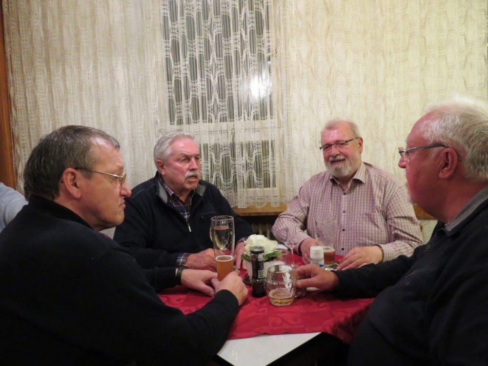 eingefunden. Hier gab es ein Büffet mit Metzelsuppe, Wellfleisch, Blut- und Leberwürste, Bratwürste, Sauerkraut, sowie kalte Platte mit Hausmacher Wurst und Griebenschmalz. In dem Lokal kamen neben den Weinfreunden auch die Biertrinker auf ihre Kosten. Die Stimmung war bestens und Paul Rath stimmte noch einige Weinlieder an, um dem weinseligen Abend seine besondere Note zu verleihen. Das Essen wurde von allen Seiten der Senioren sehr gelobt und alle wurden dank des reichhaltigen Büffets angenehm satt.