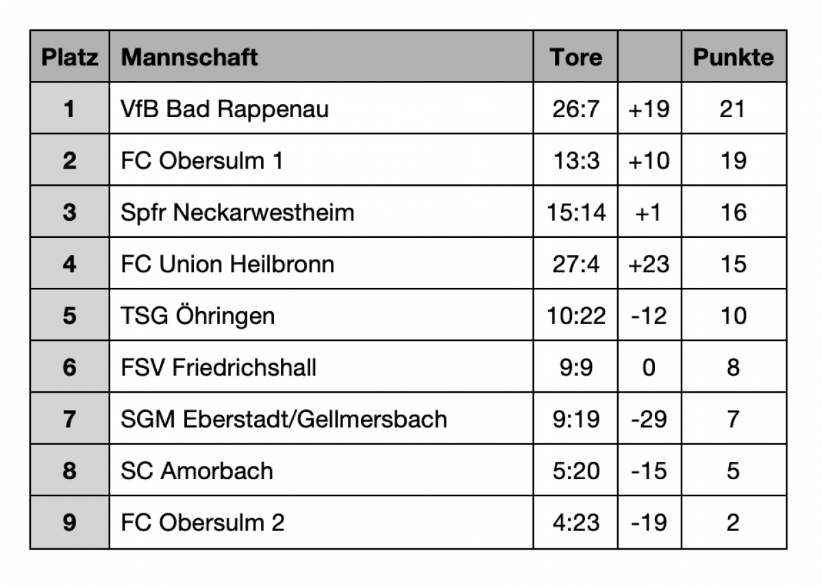 Bei 7 Siegen und lediglich einer unnötigen Niederlage gegen die Spfr. Neckarwestheim gewann man das Hallenmaster in Obersulm grandios und mit Sicherheit nicht unverdient.