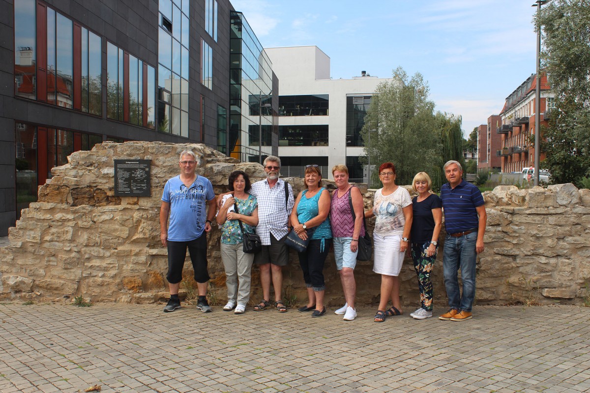 Am letzten Wochenende machten sich 8 Personen der Theatergruppe des VfB zu ihrem jährlichen Ausflug Richtung neue Bundesländer auf. Ziel der Reise war diesmal die Landeshauptstadt Thüringens Erfurt. Über Würzburg, Schweinfurt und Suhl erreichte man gegen Nachmittag die Landeshauptstadt. Hier ließ man sich nach kurzer Pause von einer Mitarbeiterin des Touristikbüros die Sehenswürdigkeiten der Stadt erklären. Auf diesem Spaziergang ging es durch die engen Gassen der Stadt über das Haus zum Sonneborn, das Haus zum roten Ochsen, das Haus zum breiten Herd und schließlich erreichte man das am Fischmarkt gelegene Rathaus. Von hier ging es über Krämer- und Rathausbrücke, dem Turm der Ägidenkirche zum Benediktsplatz. Am nächsten Tag wurde in Eigenregie noch der Dom und die Severikirche besichtigt. Nach Stärkung im Biergarten des Domplatzes machte man sich auf den Weg zum Abfahrtspunkt einer alten Straßenbahn. In einer 2- stündigen Rundfahrt durch Erfurt konnten noch weitere sehenswerte Gebäude wie das Haus am Stockfisch, Bismarckhaus, Anger, Willy Brandt Platz und weitere Plätze in Augenschein genommen werden. Am späten Nachmittag stand noch der Aufstieg zur alten Festung auf dem Petersberg mit einer Funzelführung durch die Kasematten und Horchgänge der Zitadelle auf dem Programm. Den Abend ließ man in den Altstadtkneipen der Stadt ausklingen. Nach dem Frühstück am nächsten Morgen begab man sich wieder auf die Heimreise. Zur Zeit ruhen die Aktivitäten der Theatergruppe und man beschränkt sich auf die jährlichen Ausflüge. Jedoch zum 100-jährigen Jubiläum will man wieder ein Stück im Rahmen des Herbstfestes aufführen.
